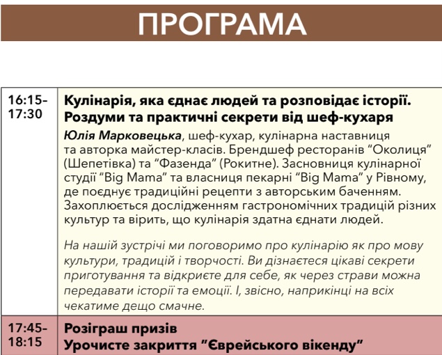 Детальна програма «Єврейського вікенду» у Рівному – за посиланням.