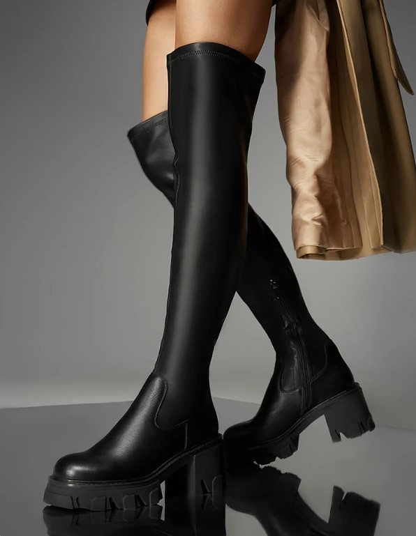 Стильні ботфорти на грубій підошві особливо доречні в містах, де дороги далекі від ідеалу, а погода часто змінюється. Посилена конструкція та продумана підошва забезпечують стійкість і комфорт, навіть коли маршрут виходить за межі “легкої прогулянки”.