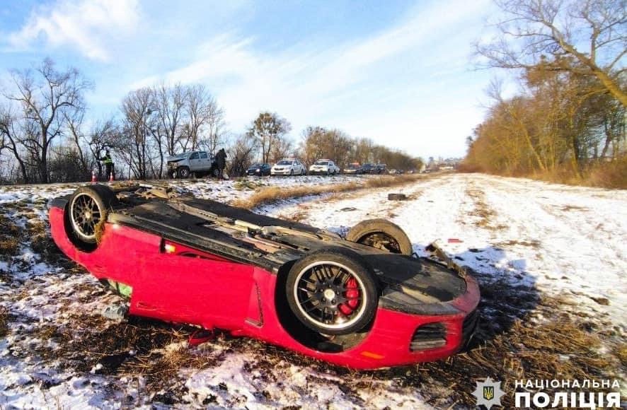 Від удару легковик вилетів у кювет та перекинувся на дах.