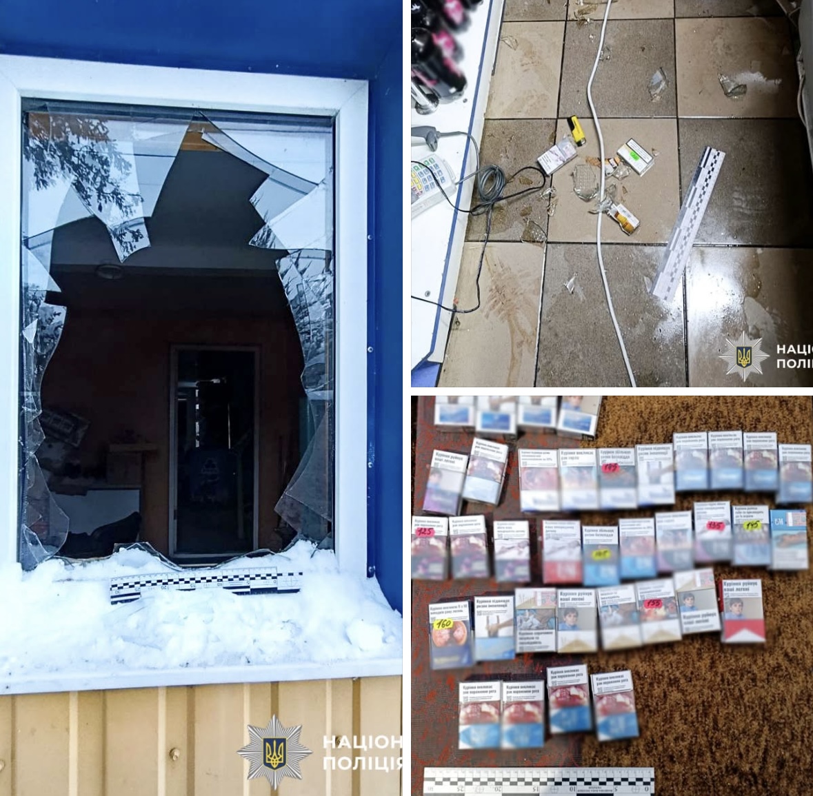 Поліцейські встановили, що вночі невідомий ломом зірвав металеву решітку та молотком розбив скло у пластиковому вікні. Таким чином зловмисник проник усередину, звідки виніс продукти харчування, алкоголь, цигарки та викрав з каси близько тисячі гривень.