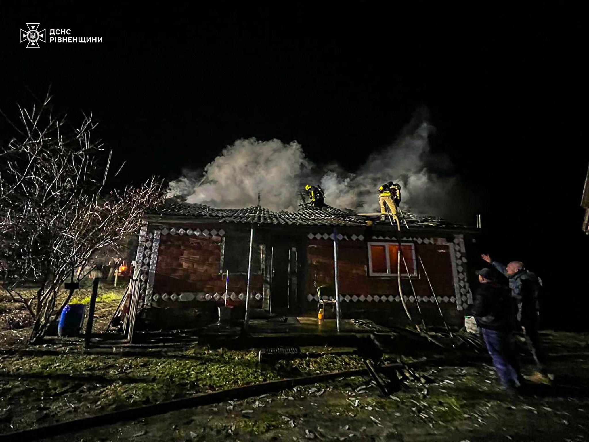 На місце виклику виїхали рятувальники 19-ї державної пожежно-рятувальної частини міста Костопіль та місцеві пожежні команди с. Головин та с. Яполоть. Вогнем було охоплено покрівлю житлового будинку. На гасіння оперативно було подано вогнегасні речовини.