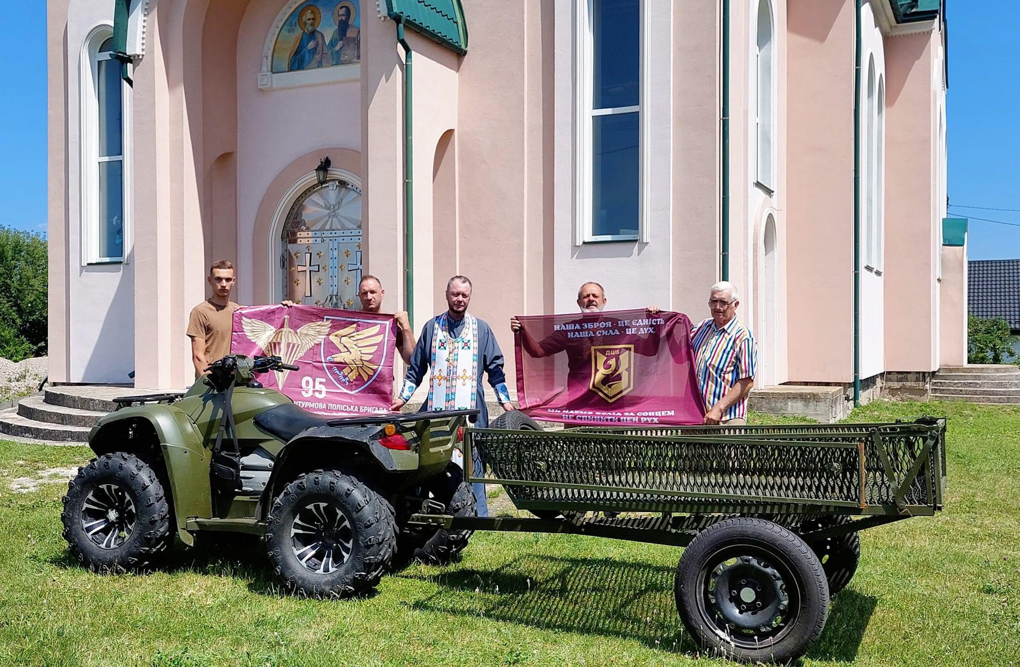 Сьогодні, 6 липня, Леонід Якимчук передав квадроцикл Honda б з причепом для воїнів-штурмовиків 95 ОДШБр.Техніку благословив настоятель храму Петра і Павла ПЦУ отець Василь.