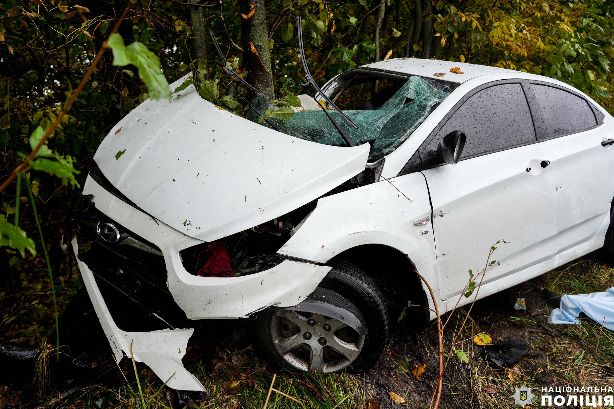 Від удару «Hyundai» злетів у кювет та врізався у дерево. Його керманич загинув на місці. До лікарні також доставили двох пасажирів легковика «Toyota» — 31-річну дружину водія та їхнього чотирирічного сина.