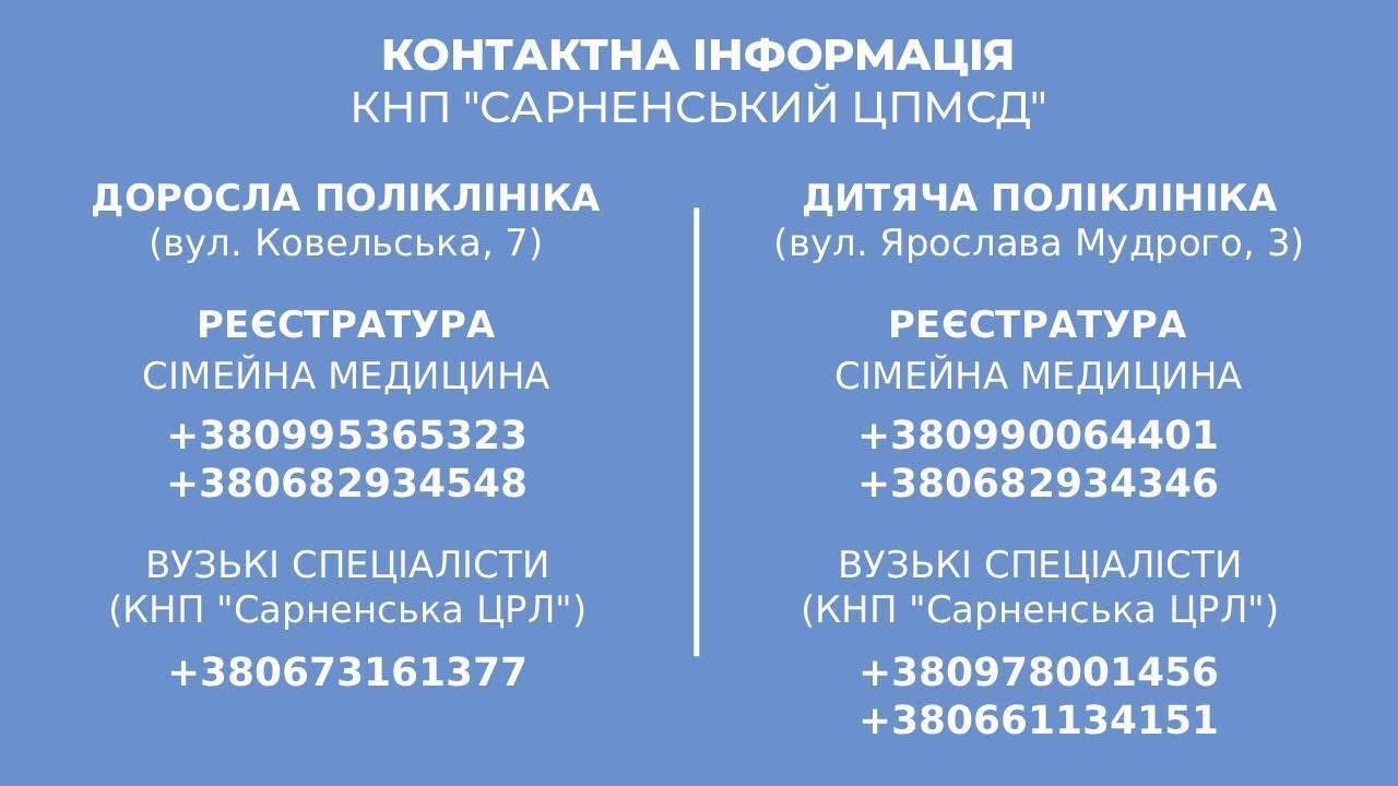 Контактна інформація КНП «Сарненський ЦПМСД»: