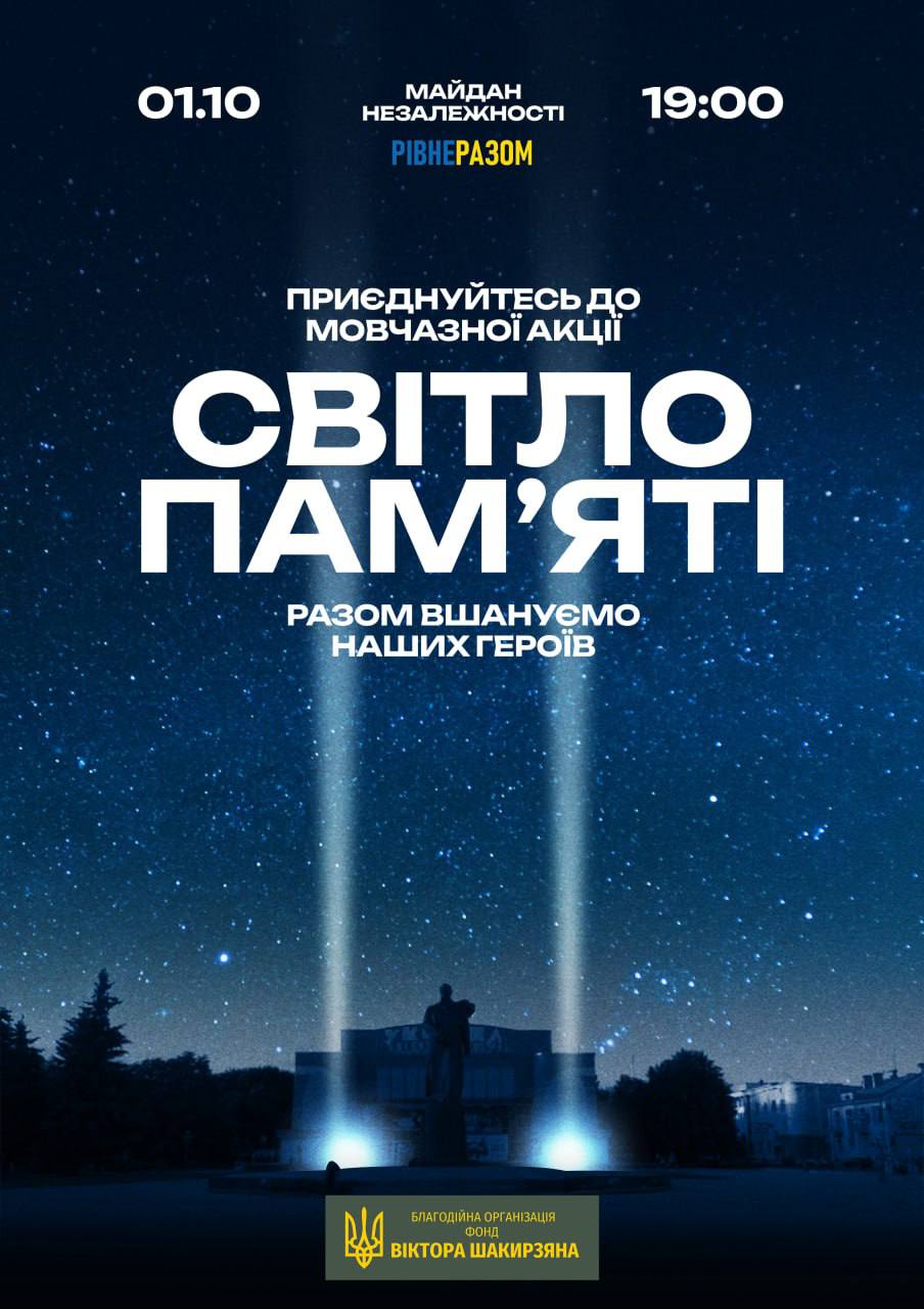 Організатори мовчазної акції «Рівне Разом» та Благодійна організація «Фонд Віктора Шакирзяна» запрошують усіх долучитися до вшанування пам'яті загиблих воїнів.