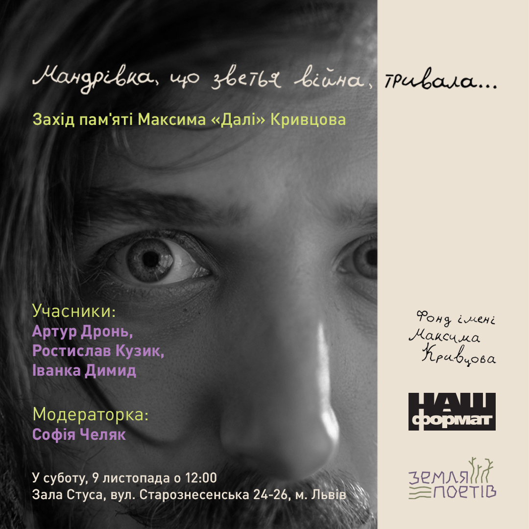 Вірші звучатимуть у пам’ять про Максима «Далі» Кривцова.