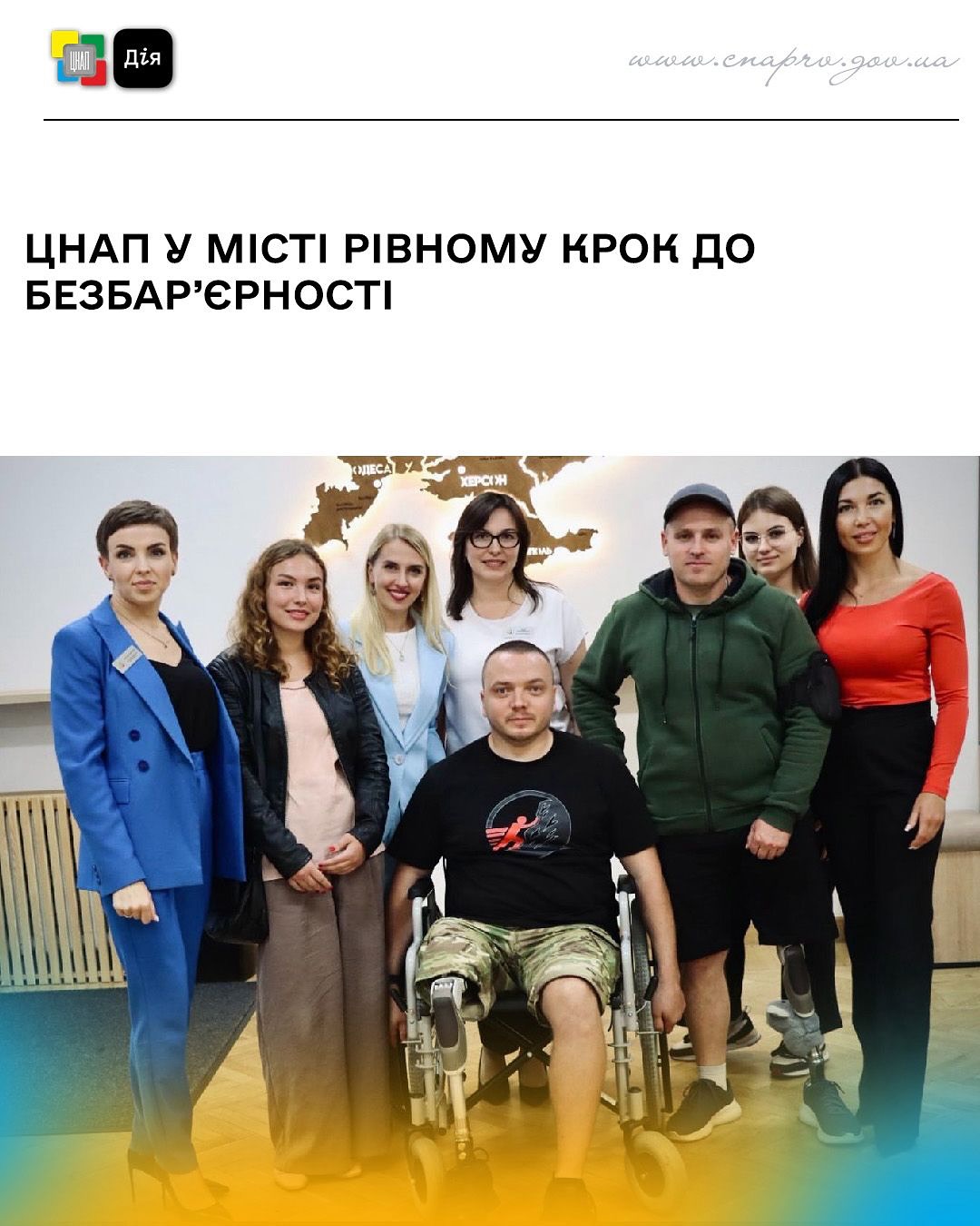 Центр надання адміністративних послуг у місті Рівному гостинно відкрив двері для представників Громадської Організації «Зруш Скелю», яка реалізує всеукраїнський проєкт із визначення столиці безбар’єрності — обласного центру з найвищим рівнем фізичної доступності для маломобільних груп населення.
