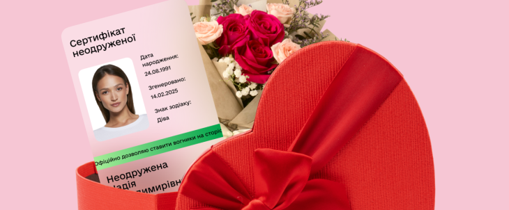 "Холостяки та холостячки — оновлюйте Дію! До Дня закоханих додали новий документ для вас — сертифікат неодруженого або неодруженої. Діліться сертифікатом у соцмережах та надсилайте в месенджерах або просто покажіть QR-код у застосунку — нехай усі знають про ваш статус. Сертифікат не є офіційним документом. Але дані перевіряються в реєстрі — і це справжня візитівка холостяка чи холостячки. Тож якщо ви повнолітні, не були у шлюбі / розлучені — це ваш прайм-тайм!", - пишуть там.