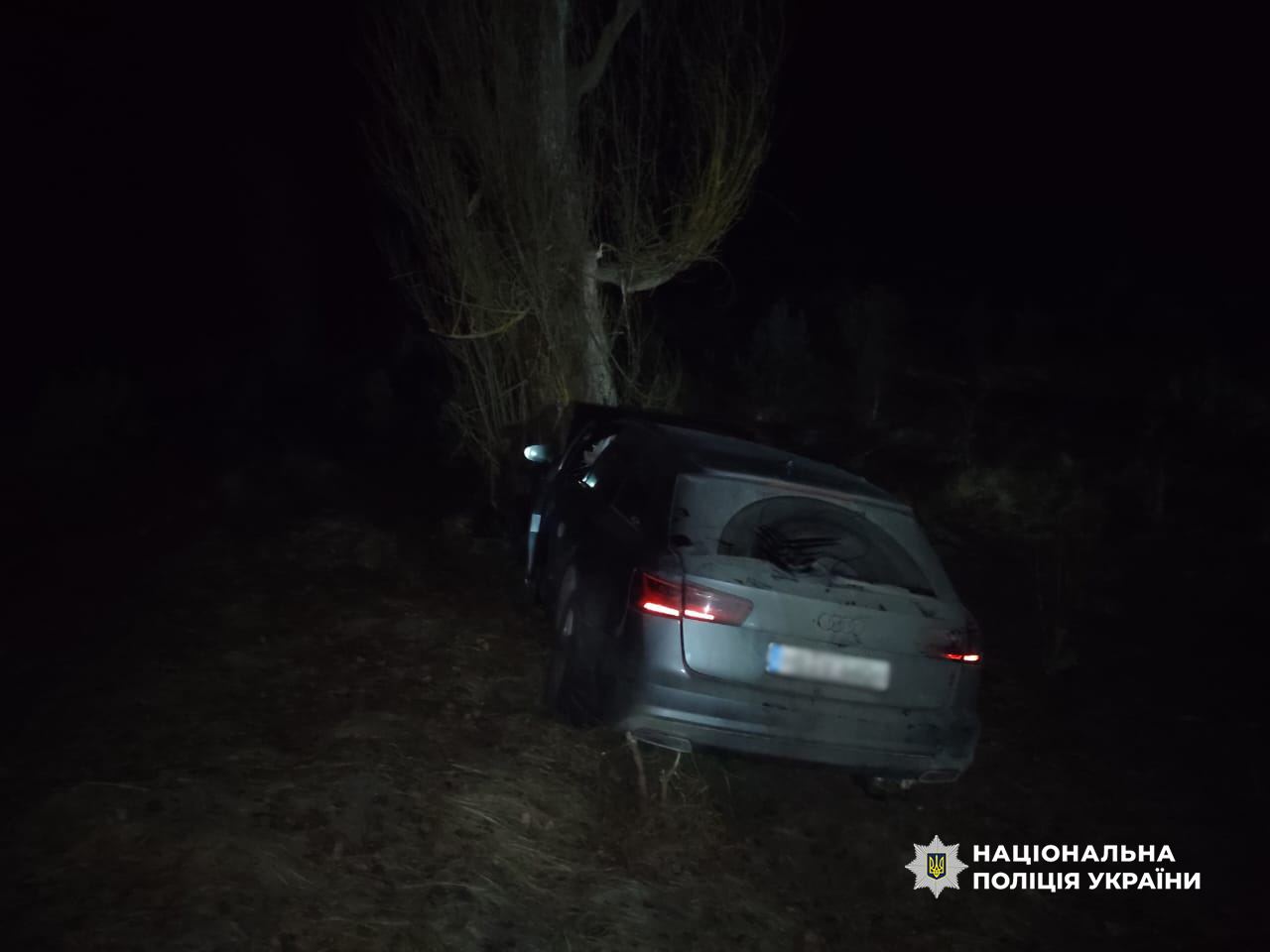 Слідчий попередньо встановив, що водій автомобіля «Audi», 21-річний місцевий житель, не вибрав безпечної швидкості, не впорався з керуванням та виїхав за межі проїзної частини, де допустив наїзд на дерево.