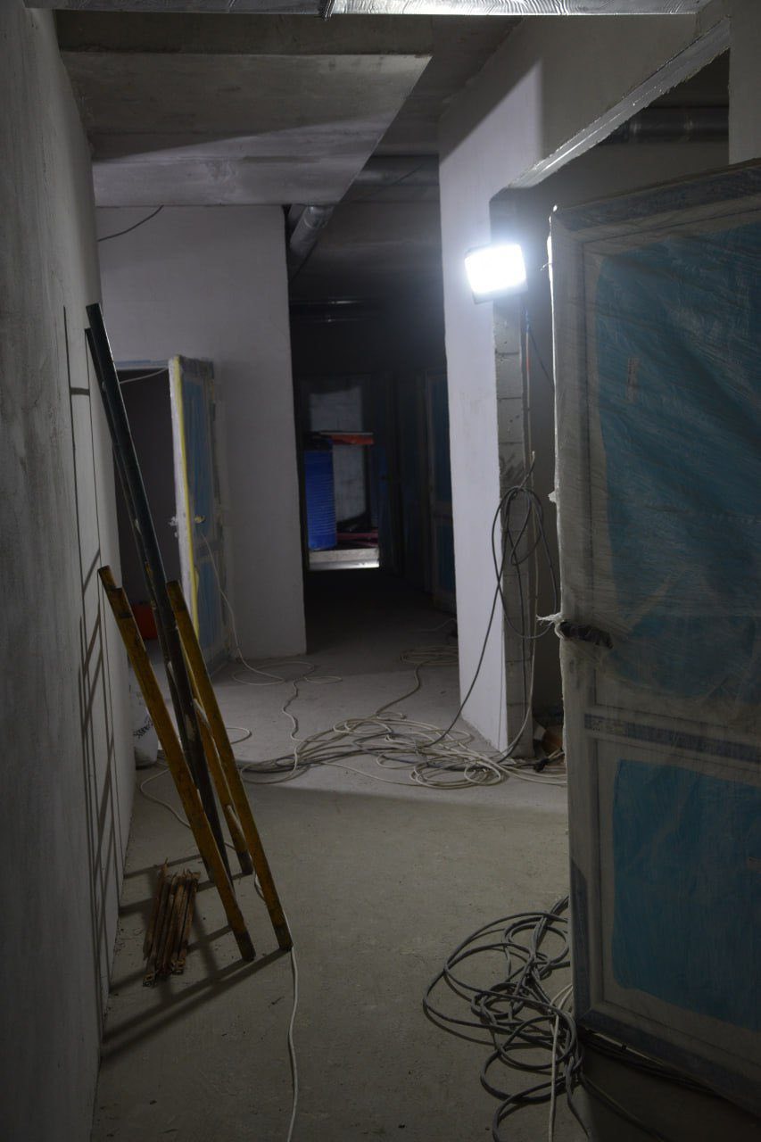 "Зовні повністю виконано бетонування, укриття засипане ґрунтом, на 70% укладено тротуарну плитку. Усередині завершено внутрішні перегородки та систему вентиляції, на об’єкт завезено необхідне обладнання. Наразі триває осушення приміщень. Після його завершення буде встановлено стільці, ліжка, мікрохвильові печі та інше оснащення. Продовжуються внутрішні оздоблювальні роботи", - каже він.