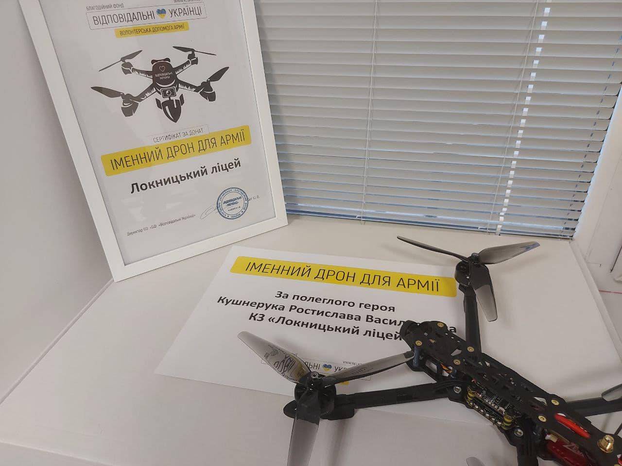 Колектив КЗ «Локницький ліцей» зібрав гроші на «дрон помсти» за полеглого героя Кушнерука Ростислава Васильовича.