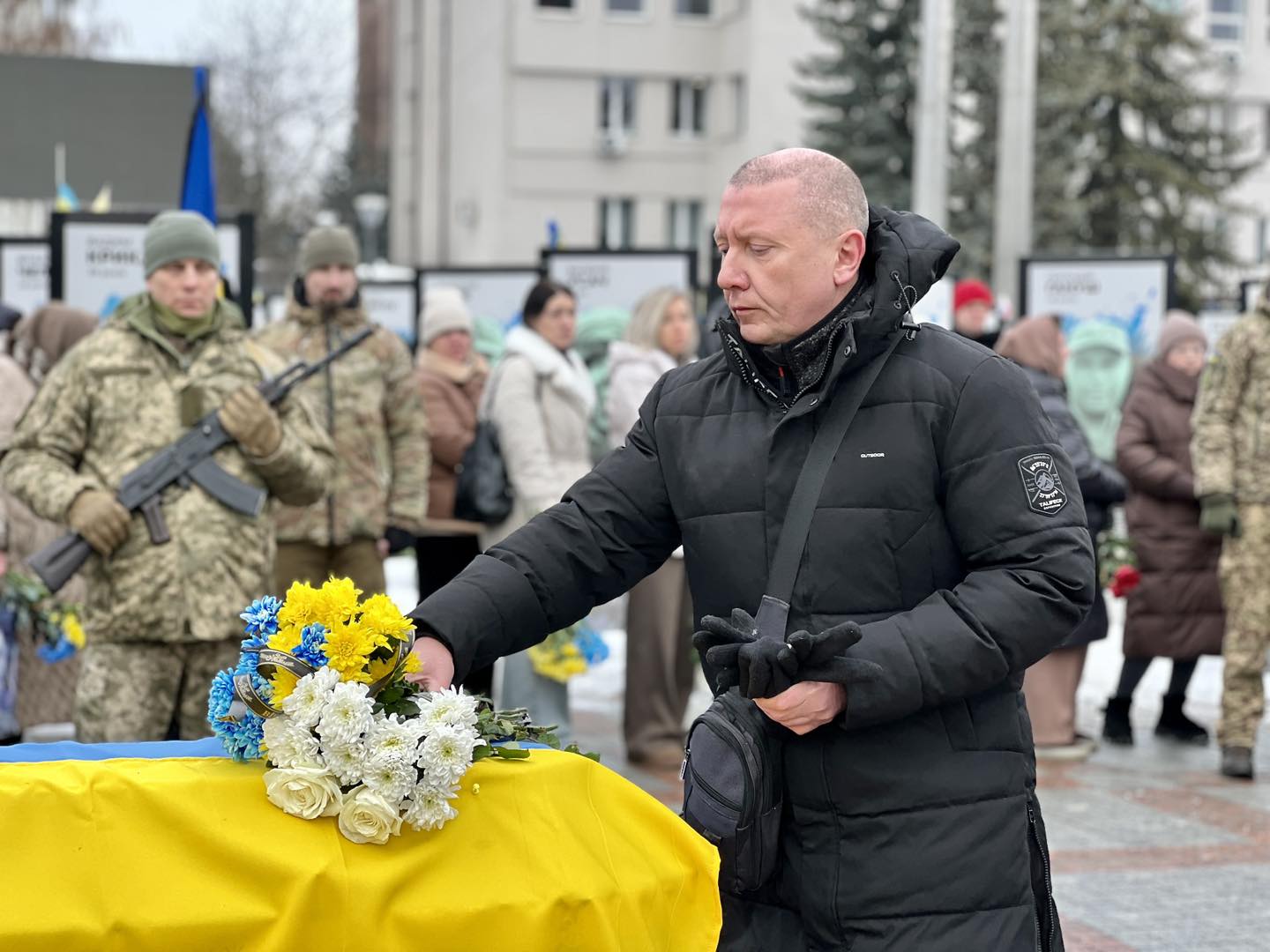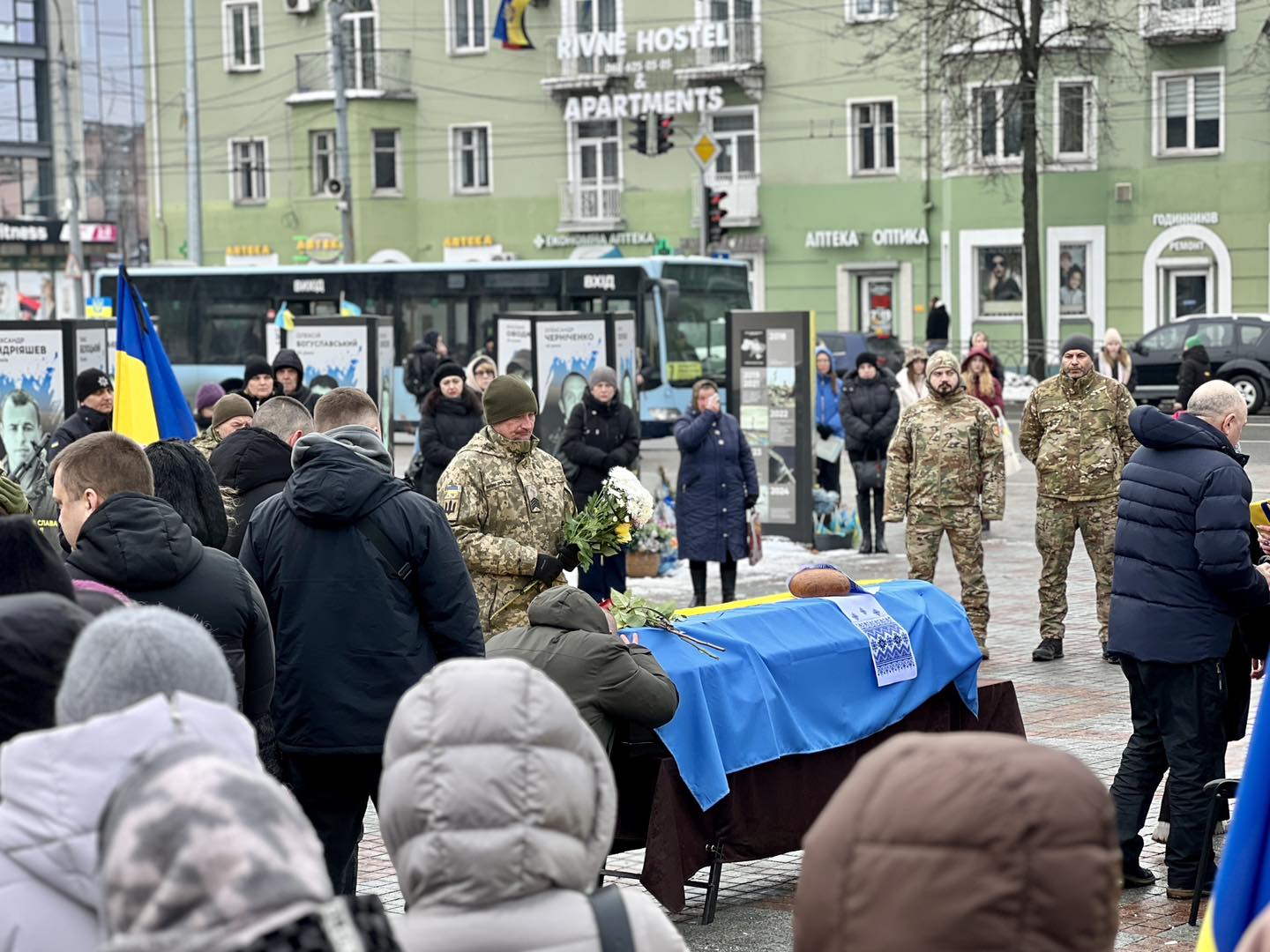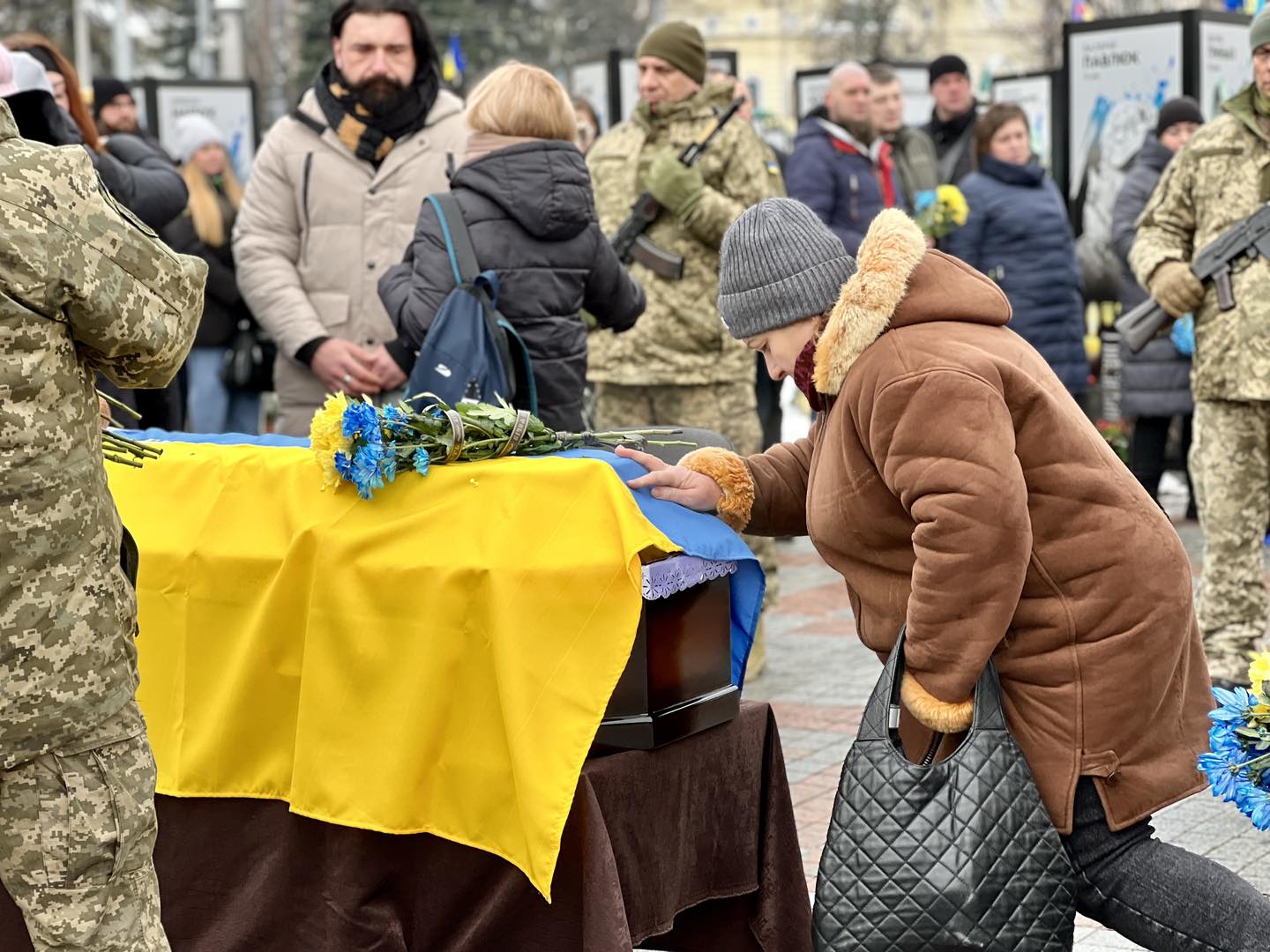 Сьогодні, 11 лютого, на центральному майдані провели в останню земну дорогу полеглого на війні Захисника України – Дмитра Тарасевича. Про це повідомляє пресслужба Рівненської міської ради.