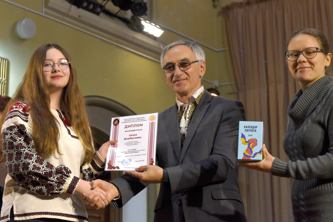 І не втомлюються боротися з окупантом пером, проникливим українським словом: йдеться про акції «Борімося – поборемо!» та «Лист солдату». Радісні обличчя бійців, які читали зовсім недитячі за змістом дитячі твори, стали для просвітян найвищою винагородою. Учасники ж обласного творчого конкурсу «Перло многоцінне», який цього року «Просвіта» провела 21-ий раз, отримали нагороди тут таки, на урочистостях. До дипломів переможців різних ступенів вирішили додати «Календар патріота» - цінну, насамперед духовно, річ. Ту, яка сьогодні має стояти на покуті в кожній українській домівці. Її автор – просвітянка міської організації «Просвіти» Ірина Сичик.